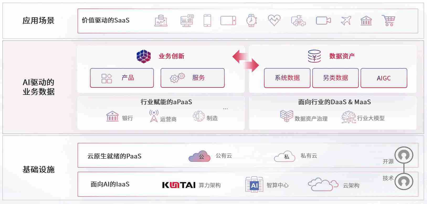 数字时代,,围绕企业数字化转型的关键要素,,,人生就是搏数码开创性的提出数云融合战略和技术体系框架,,着力在云原生、、、、数字原生、、、、AI原生和信创产业上架构产品和服务能力,,为处在不同数字化转型阶段的快消零售、、、汽车、、金融、、医疗、、政企、、、、教育、、、运营商等行业客户提供泛在的敏捷IT能力和融合的数据驱动能力,,,构建跨界融合创新的数字业务场景和新业务模式,,,助力企业级客户建立面向未来的核心能力和竞争优势,,,全面推动社会的数字化、、智能化转型升级。。